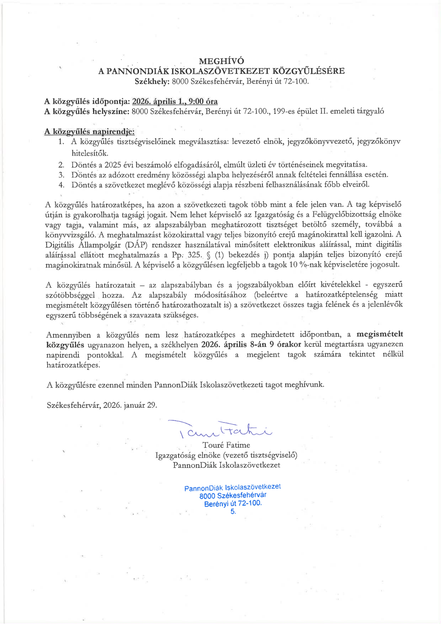 Meghívó a pannondiák iskolaszövetkezet közgyűlésérE